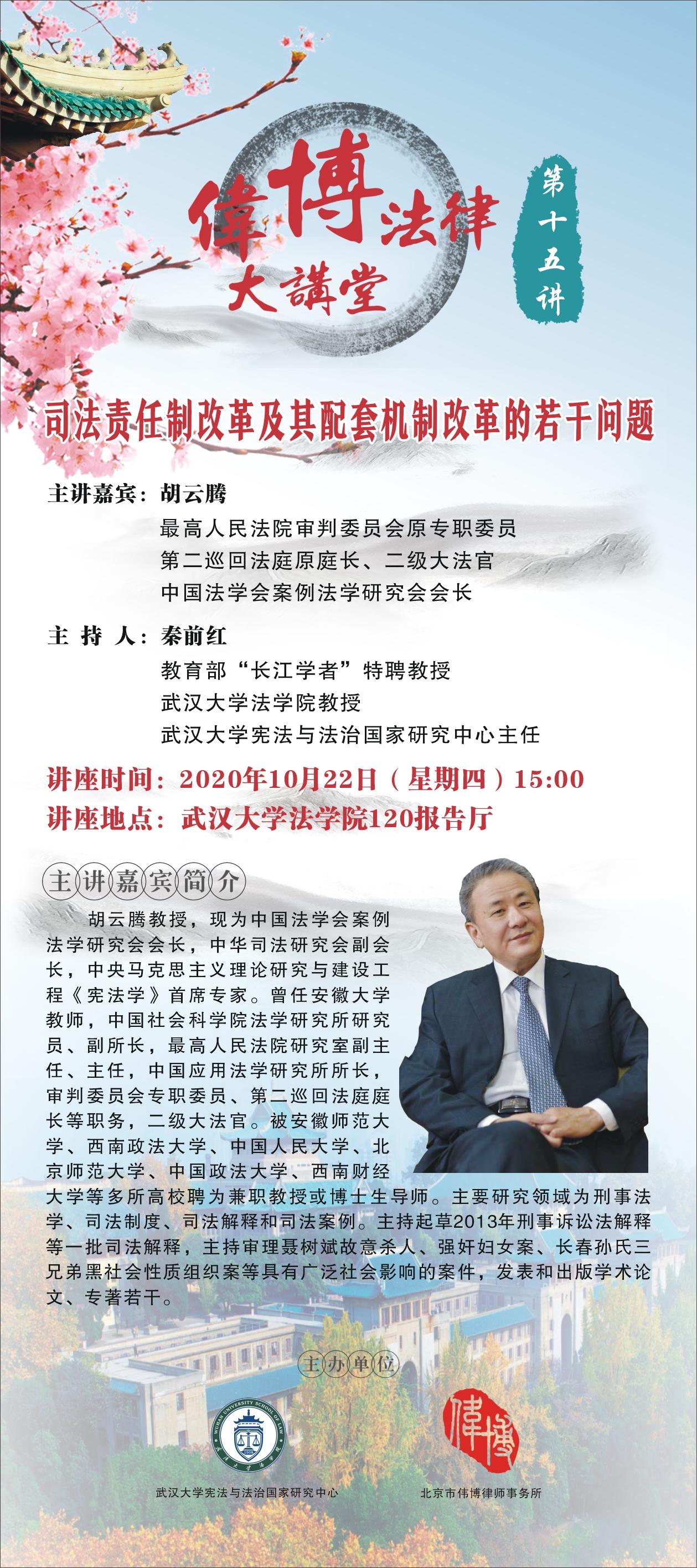 【“伟博法律大讲堂”第十五讲】胡云腾:司法责任制改革及其配套机制改革的若干问题