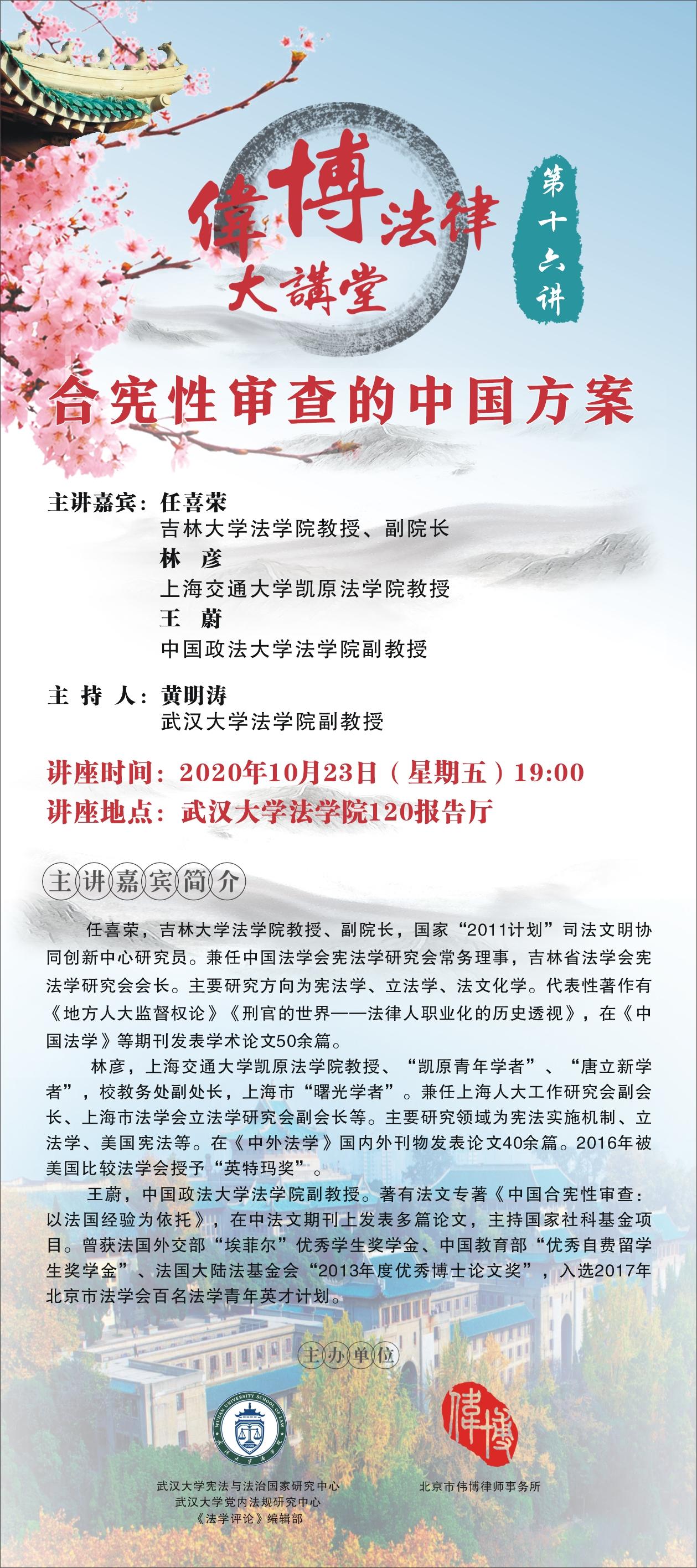 【“伟博法律大讲堂”第十六讲】任喜荣、林彦、王蔚:合宪性审查的中国方案
