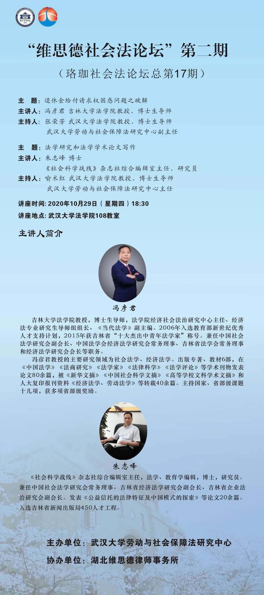 【“维思德社会法论坛”第二期】(珞珈社会法论坛总第17期)