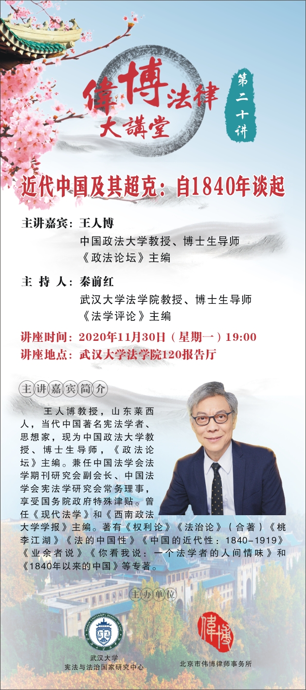 【“伟博法律大讲堂”第二十讲】王人博:近代中国及其超克:自1840年谈起