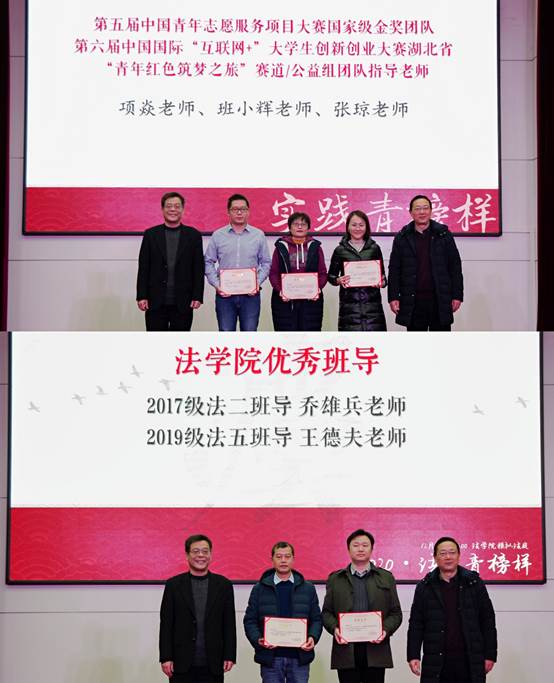 2020年度本科生“法苑青榜样”表彰大会暨双旦晚会在模拟法庭隆重举行。学院党委书记孙德元、院长冯果、党委副书记胡伟、副院长武亦文、马克昌法学基金会秘书长叶小琴、韩德培法学基金会办公室主任郭莉、四人麻将玩法