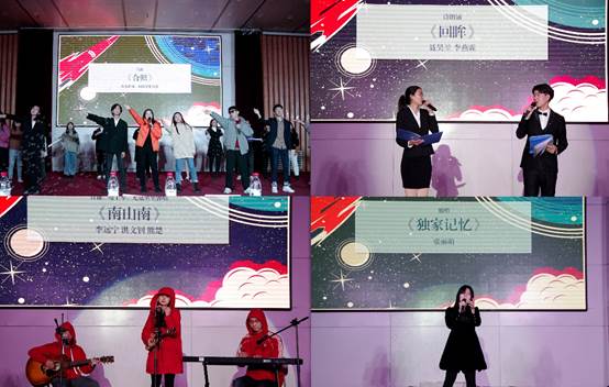 表彰大会结束后,同学们翘首以盼的2020年本科生双旦晚会在余奕老师与学生代表合唱的一首《合照》中拉开了序幕,女声独唱的《独家记忆》叙说了对珞珈的深情,体育部表演的情景剧《奔跑吧,小鑫》鼓励同学们积极参与体育活动,合唱团改编歌曲《冀祥瑞你到底把我家钥匙放在哪里了》用颇具独创性的演唱风格与出色的舞台表现获得了全场观众的一致喝彩,为此次联欢会画上了圆满的句号。