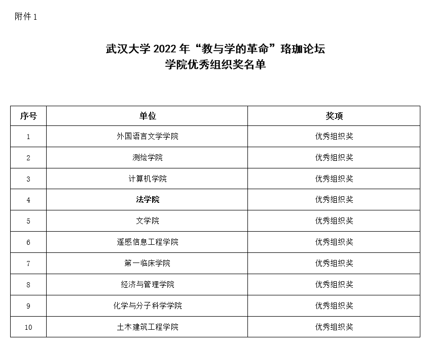 2022年“教与学的革命”珞珈论坛学院优秀组织奖及教学论文获奖名单公布。经学校组织专家对学院分论坛活动组织情况和师生论文进行严格评审,最终评选出学院优秀组织奖10项和获奖论文61篇。