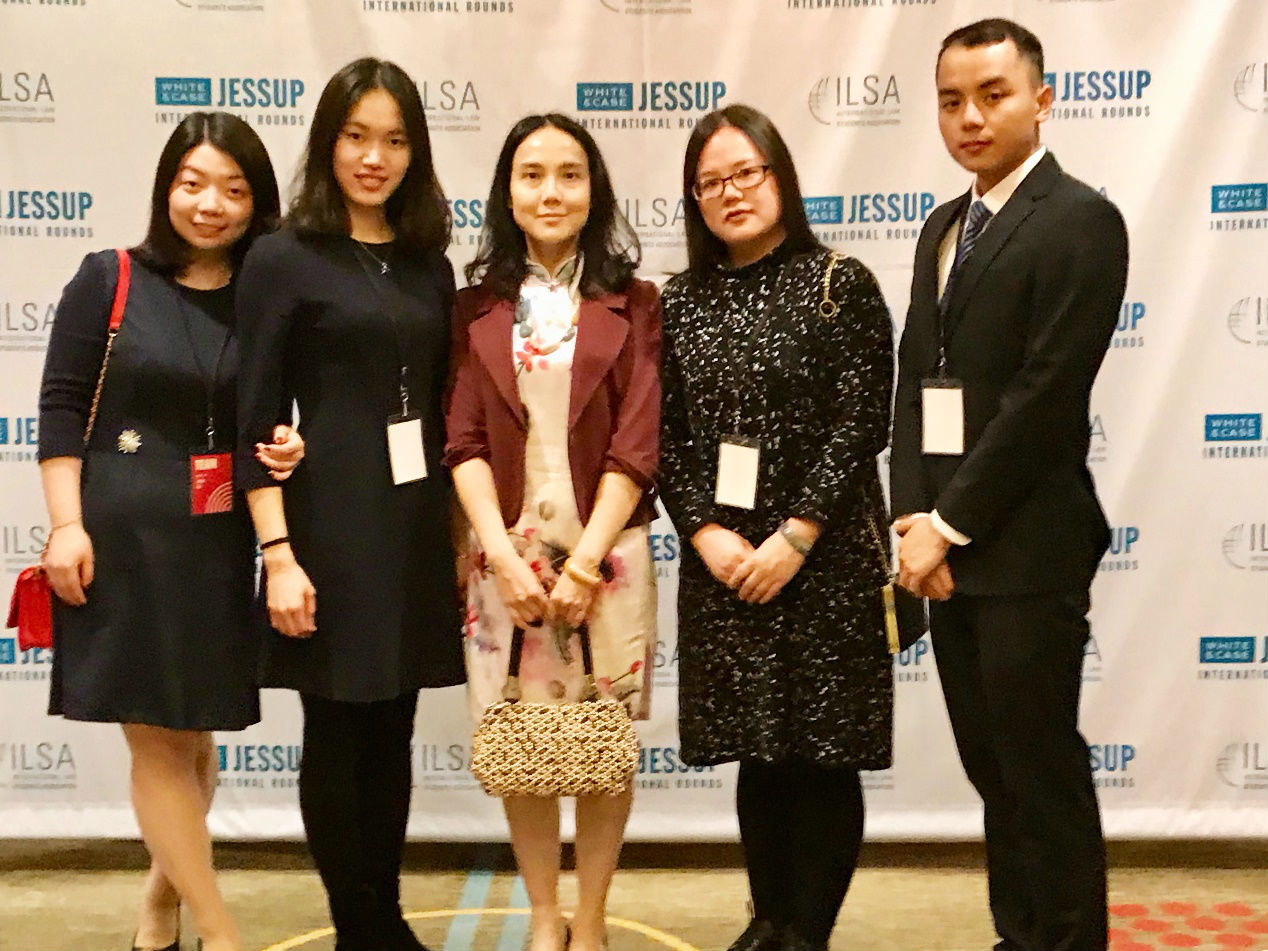 2014级本科生张榆钧,2017级国际公法研究生朱子逸,研究人员2017级国际公法研究生梁勇前往华盛顿参赛。