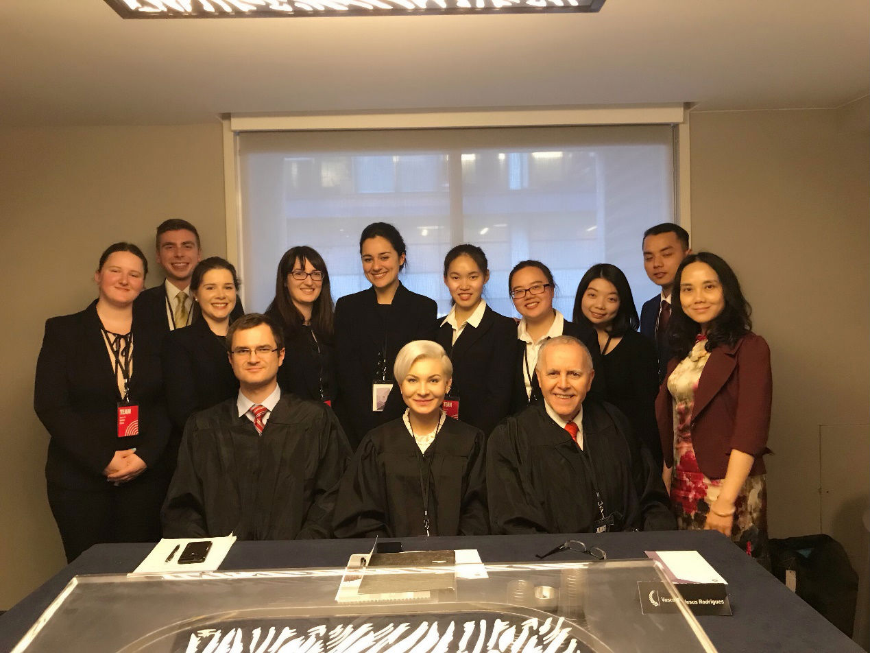 本次国际赛共有经过选拔的来自世界各地的132支队伍参加。在国际赛中,我校代表队先后与加州大学伯克利分校、爱尔兰律师协会、冰岛大学和马耳他大学进行了交锋,并凭借着扎实的法律知识基础,过硬的心理素质和优秀的团队配合,赢得了来自对手和法官的好评,并在比赛之外与来自世界各地的队伍进行了友好的文化交流。