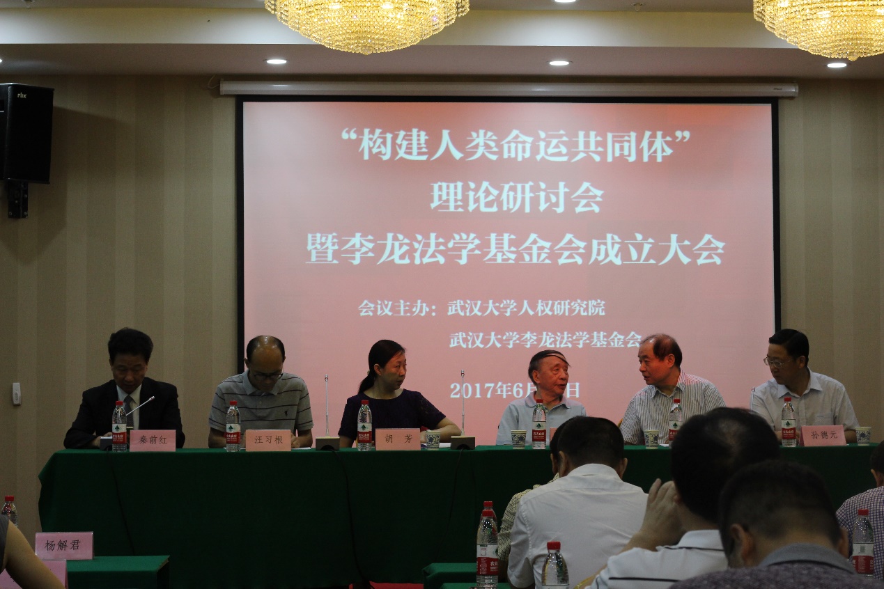基金会成立大会后,秦前红教授主持了第二单元的理论研讨会。李龙教授作了“构建人类命运共同体,开创人权事业新时代”的主题发言。首先对传统人权理论的演进进行了梳理与评说,随后李龙教授提出人权新时代的科学内涵与基本原则实际是指“人类命运共同体”与“一带一路”的科学内涵与基本原则。即以发展为人权的核心理念,以共同体为人权唯一载体,以人的全面发展为人权的根本目标;以共商、共建、共享为人权建设的基本原则。最后李龙教授论证了“构建人类命运共同体”的理论逻辑。参会嘉宾对“构建人类命运共同体”是否具有普世价值、人权的普适性与局限性、统一的人权观与文化多样性的区别、构建共同体的力量来源及人权的核心等问题进行了深入的探讨。