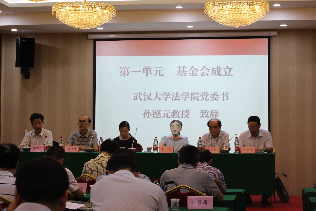 会议首先由基金会理事举手表决,全票通过基金会章程,投票选举汪习根为基金会理事长。基金会登记主管单位湖北民政厅社会组织管理处处长胡芳就基金会章程条款、财务监管、信息公开等事项作出指示。学术委员会主席李龙感谢各位理事对基金会成立做出的贡献,随后基金会理事长汪习根对基金会未来的运作与管理做出了规划。大会宣布李龙法学基金会正式成立。