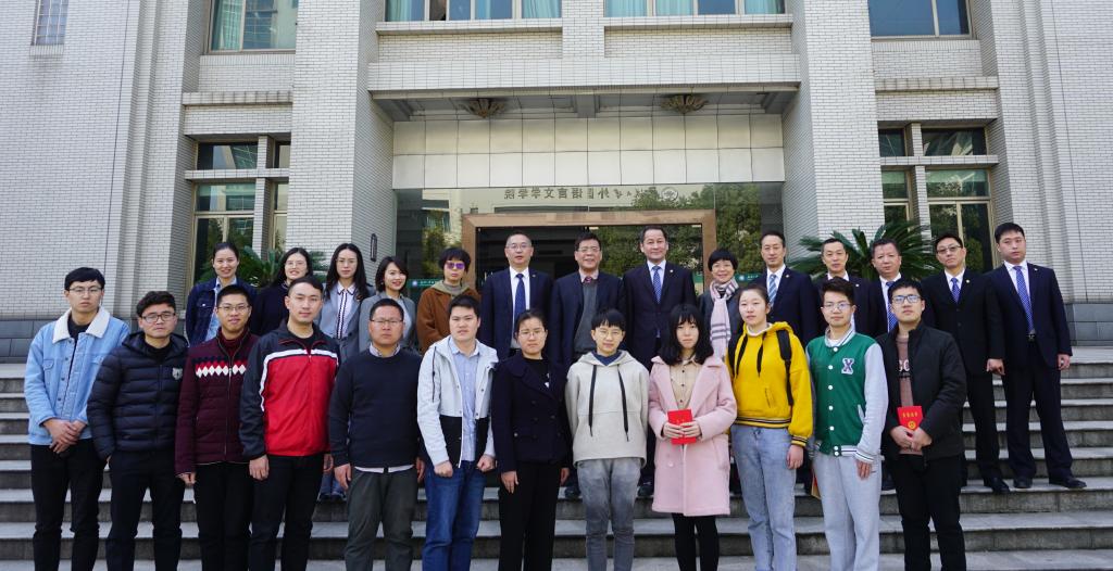 院长冯果、党委副书记谢雅维、黄丽,研究生辅导员贾经铭、本科生辅导员余奕及12名获奖同学参加仪式。仪式由谢雅维副书记主持。