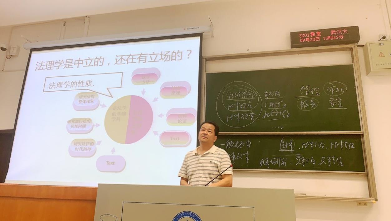 在同学们对法理学有了初步的了解后,徐亚文老师抛出了一个重要问题:“法理学是中立的,还是有立场的?”为了解释这一问题,徐老师通过图表,向新生们展示了法理学的复杂性。法理学既是一门研究法的整体现象的学科,又是一门研究法学方法论的学科,更包含着对于法律时代精神的探讨。在法理学体系中,除了本体论,发展论,运行论等或是横向或是纵向的探讨方向外,还有一个亘古不变的核心:对于法的价值的探讨。于是,徐老师将关注目光转到了法律人的世界观与思维方式。他告诫新生,一个法律人,不仅要从科学推理的角度认识法,认识社会,还要有哲学般对自身的反思,宗教般对法律的信仰,艺术般对语言的审美。但最重要的,徐老师指出,不同于经济人的理性,政治人的权力欲,法律人最应该具备的,是道德的正义。无论是从个人角度对人权的坚守,还是从国家角度为国家强盛的奋斗,亦或是从社会角度的以秩序和谐为本,种种立场下,法律人都应该秉持一颗不变的、善良的本心,做个人道德良知的主宰者,无论做出什么样的决定,都要维持内心的正义与善良。这也间接回答了法理学这门学科的立场问题。法理学作为一门学科,对于不同立场的法都会进行深入的研究,但研究者的内心应该是始终不变的正义之心。
