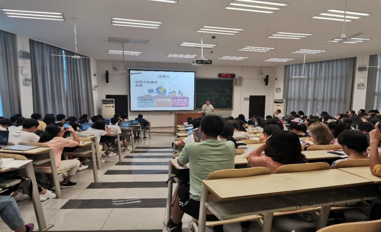 最后,徐老师向两百多名新生送上了自己对法律人基本品格的定位:在注重社会经验的同时,敬畏规则,遵循良知。既有前程,更行善举。