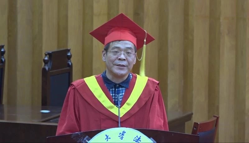 在庄重的国歌声中典礼拉开了序幕。首先是冯果院长致辞。未来的路不会是一帆风顺的,它神秘莫测而又引人向往,冯院长向即将步上新的人生之路的毕业生们给予了宝贵的赠言:“一种阳光的心态,胜过千百种智慧的力量。”在冯院长看来,人生如棋,若想得胜,则要有一个宏大的格局,格局的建立则基于心态,对于如何建立一个阳光良好的心态,冯院长给了如下建议:学会告别,告别是一种仪式,涤旧迎新,学会告别曾经的不成熟与不足,迎接更新的,更好的自己;心存善良,善良是人品高贵的象征,拥有善良能让自己在这个社会更好地生活,让自己被快乐、幸福围绕;学会接受与知足,没有人是完美的,更没有人的一生会是一帆风顺的,过于追求胜利与完美会让自己的生活失去色彩,学会知足与接受,才能让自己发现生活中的诗意与美好;保持自信与刚强,山高人为峰,自信与刚强会帮助大家克服一切困难,到达成功的彼岸。冯院长以他丰富的阅历为各位毕业生们送上了自己的祝福与嘱托,愿大家心怀热情,勇敢前行。