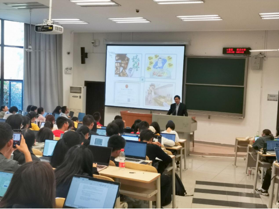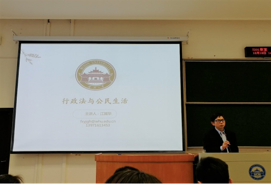 人文社会科学杰出青年学者江国华教授。2019级全体本科新生参加了本场讲座。