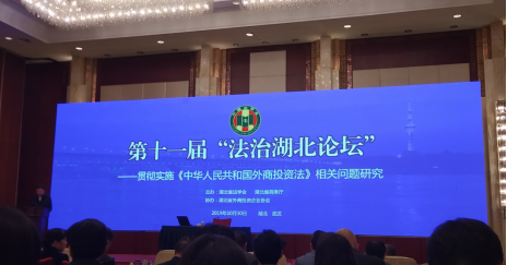 2019年10月30日,由湖北省法学会和湖北省商务厅联合组织开展的第十一届“法治湖北论坛”在武汉市洪山宾馆顺利举行。此次论坛以“贯彻实施《中华人民共和国外商投资法》相关问题研究”为主题,前期通过公开征文、定向约稿等多种方式鼓励广大法学法律工作者围绕主题积极投稿。经湖北省法学会组织专家评审和学术委员会评定,共评出优秀论文30篇。此次论坛还邀请了商务部外资司副司长叶威同志就“《外商投资法》的立法背景与外商投资的法治保障”作专题讲座,并邀请获奖代表围绕论文内容进行交流发言。