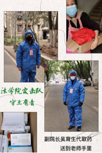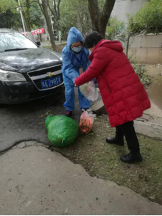 突击队员一天需连续工作9小时,加之近两周武汉昼夜温差大,正午时分有时直达25度,戴上口罩、穿上防护服不停走动对各位老师来说都是不小的挑战。面对困难,学院党员突击队干劲十足,配合社区工作人员尽职尽责做好各项工作。李安安老师认真负责,不仅及时劝阻居民外出,还上前询问每个来往的行人是否需要帮助,催促他们尽快回家;尚彩云老师在面对一名执意拉着小拖车想外出采购的老人时,耐心为他讲解目前防控的严峻局势和各级管理政策,解释了许久才把老人劝服;安丰雷老师和郭新奇老师值守期间恰遇兄弟单位对学院的捐赠物质到汉,他们马不停蹄地把爱心传递;刘中旭老师和赵晓耘老师值守时正好赶上阴雨绵绵,他们冒雨为社区居民分发爱心菜;吴育生老师主动为一位88岁的老人联系购药,又亲手将购买到的药品送至老人家中;从微信群里得知学院一位退休老教师因孤身一人在疫情期间面临吃饭难题,将爱心盒饭按时送至老人手上成为突击队员每天必须完成的任务………