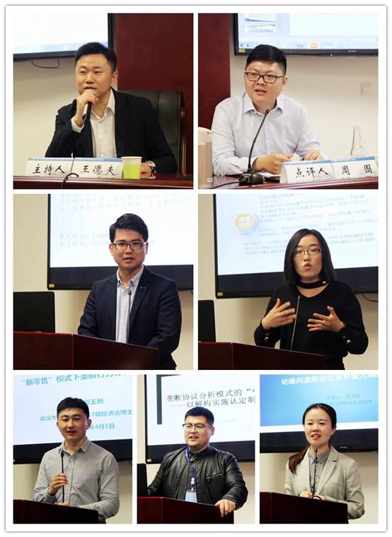 硕士研究生罗智科以《专利交叉许可的反垄断法规制》为题,将专利交叉许可与专利联营和回授等相近概念进行对比,对专利交叉许可进行了竞争效应分析并论述法理基础,指出应当从是否构成垄断协议、是否构成滥用市场支配地位这两个维度来判断能否通过反垄断法进行规制。华东交通大学讲师胡小伟博士对上述发言人的报告一一进行了点评,例如从标准必要专利的标准的法定与事实的分类入手,提出了自己关于标准必要专利的独到见解,并提出在细分领域也要注意产业政策与竞争政策的协调,还为各位发言人完善思考提出了诸多有价值的意见和建议。
