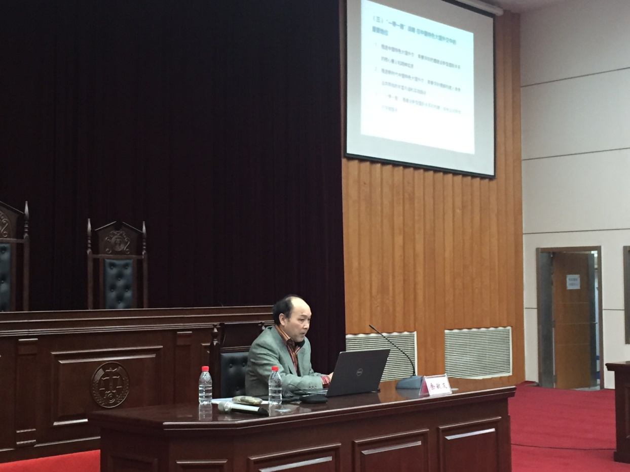 中国边界与海洋研究院院长余敏友教授为2016、2017级全体本科生作了题为《“一带一路”建设所涉及的主要国际法问题》的主题讲座,深入解读“一带一路”倡议。