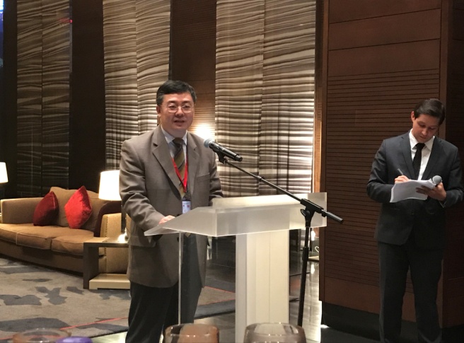 当晚,受法国驻华大使邀请,秦天宝教授出席了于大使官邸举行的酒会并代表中方代表致欢迎辞。他指出,在法国通过的《巴黎协定》所倡导的绿色、低碳、可持续发展道路,同中国的生态文明建设和绿色发展理念是非常契合的。在此背景下,两国环境法的合作,必将成为两国合作的新领域和新亮点。他以四人麻将玩法