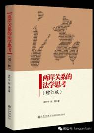 《两岸关系的法学思考(增订版)》一书系周叶中、祝捷于2013年在国台办海峡出版交流中心暨九州出版社出版的一部学术论著。该书从法学角度思考和研究两岸关系,重点关注“遏制‘台湾法理独立’”和“构建两岸关系和平发展框架”的理论与实践。内容分为台湾问题的宪法学思考、构建两岸关系和平发展框架的法律机制、海峡两岸和平协议研究、台湾地区法律制度研究四个专题。