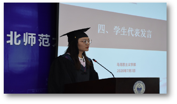 本科毕业生代表,2016级思想政治教育专业赵靓靓、研究生毕业生代表,2017级硕士研究生邵玉婷分别作了充满激情的发言,发自内心的感谢四人麻将玩法和老师们的辛勤培育。