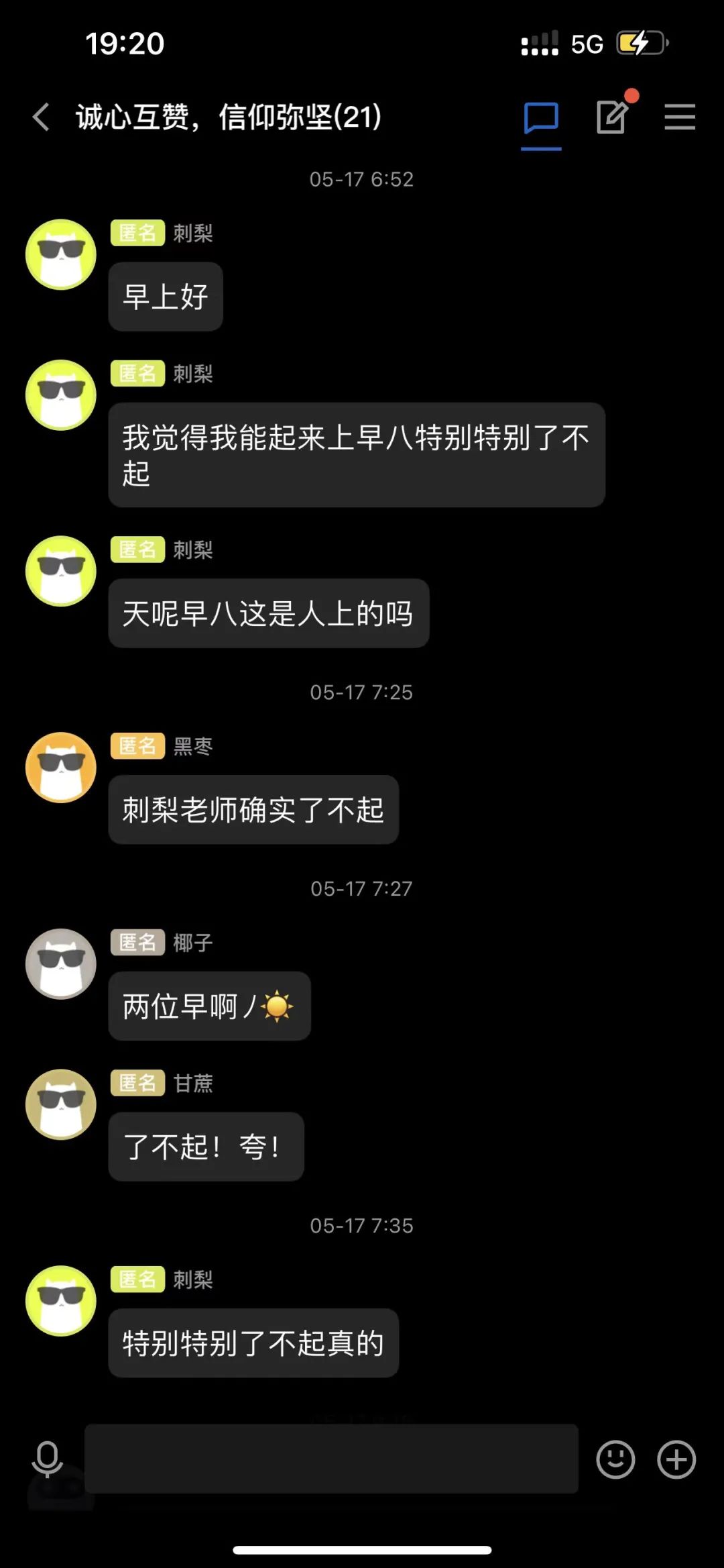 网络是柄双刃剑,我们都是“执剑人”。在“正能量夸夸群”这一线上正能量交流基地中,同学们能够时刻感受到来自他人的善意。坚持早睡早起、自觉锻炼身体......即使是生活中平平无奇的小事,也值得被夸赞;每一位热爱生活的普通人,都有独特的闪光点。在“正能量夸夸群”,热情的赞美可能来自朝夕相处的同学,也可能来自素未谋面的陌生人,无数同学的善意,在这个五月春暖花开。