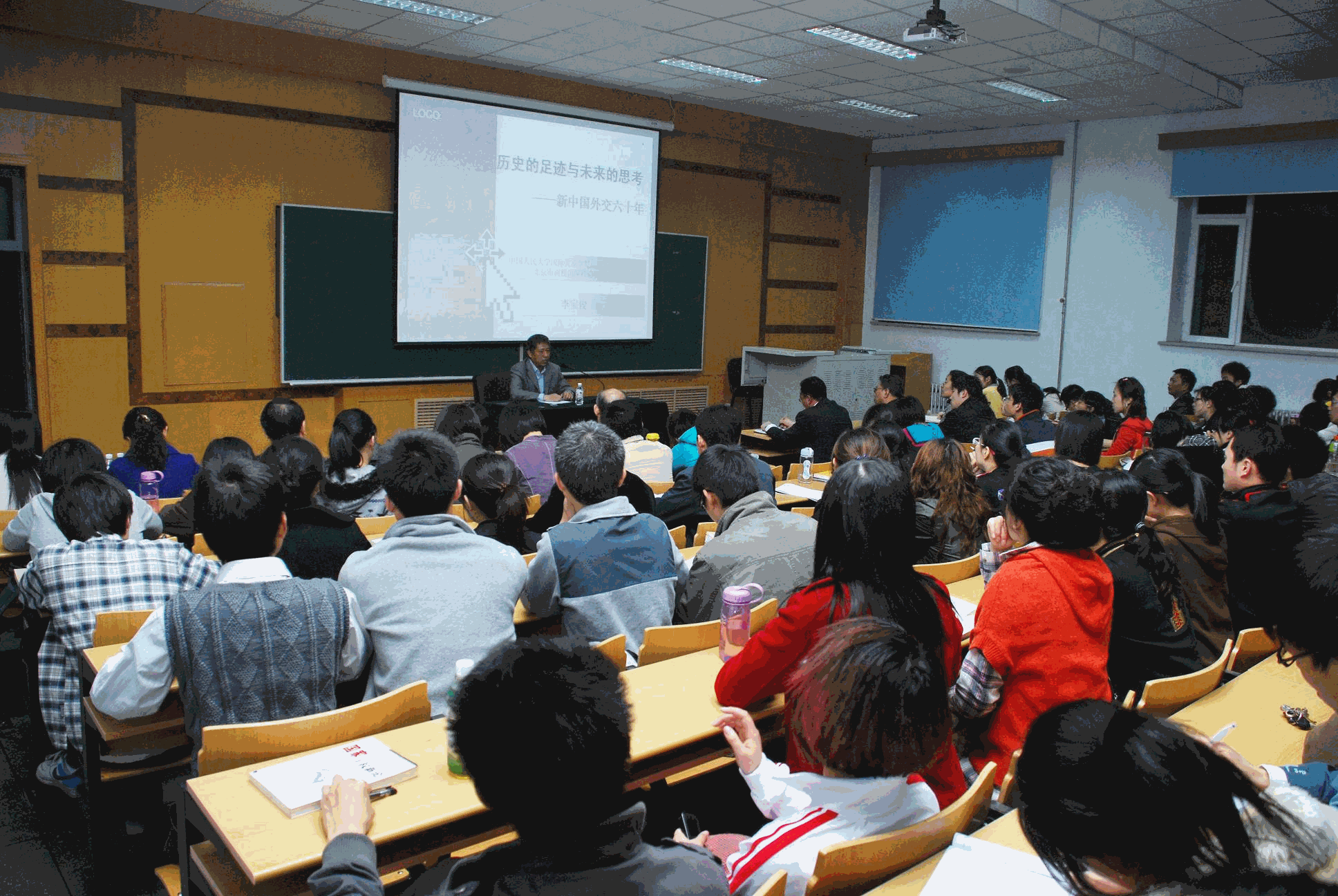 2009年4月7日晚,中国人民大学国际关系学院副院长、北京市高校国际政治研究会会长、我校客座教授李宝俊教授在我院作了题为“历史足迹与未来的思考——新中国外交六十年”的报告。