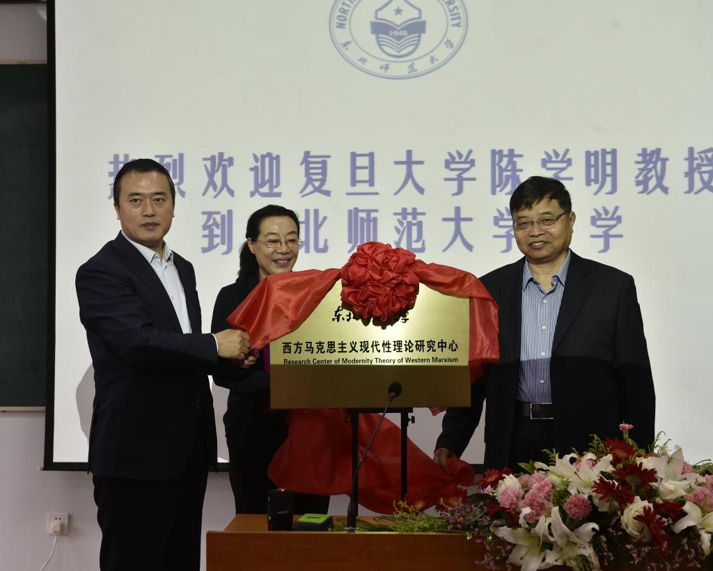 兼职教授聘书。陈学明教授与社科处负责人共同为“西方马克思主义现代性理论研究中心”揭牌。随后,陈学明教授做了题为“西方马克思主义现代性批判理论及其在当今中国的意义”的学术报告。
