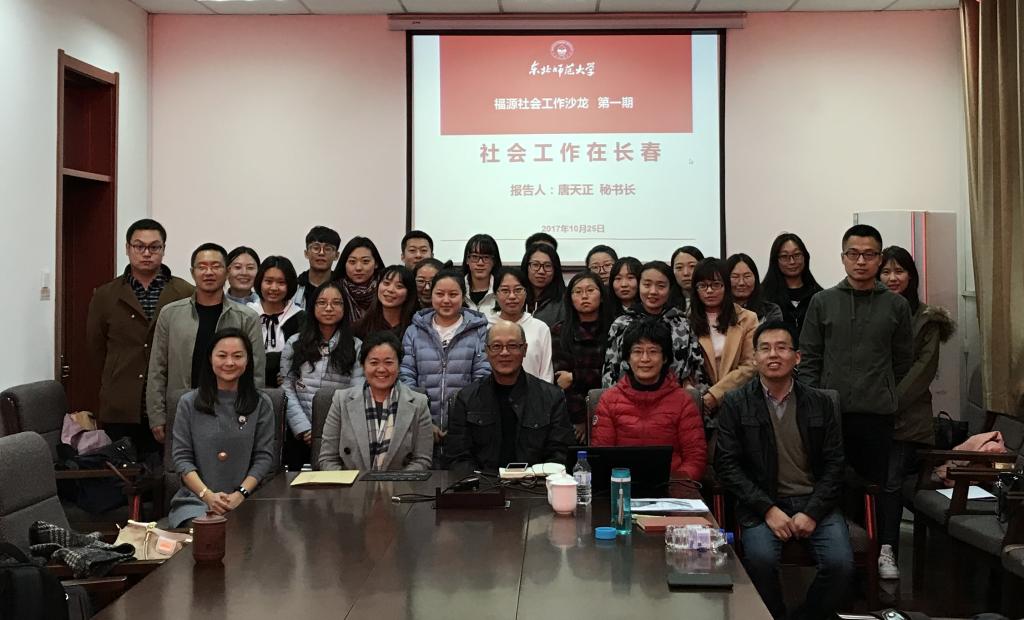 10月25日下午一点半, “中国社工十大人物”长春市社会工作者协会秘书长唐天正老师,应邀作为福源社会工作学术沙龙第一期主讲人,在四人麻将玩法二楼会议室作了题为“社会工作在长春”的学术沙龙。唐天正是长春市社会工作者协会秘书长、中国社会工作联合会理事,中国社会工作联合会吉林培训中心副主任、吉林省社会学会常务理事、吉林省生命关怀协会副会长、民政部政策研究中心特约研究员,吉林大学等五所学校的兼职教授。著有《社工实务优秀案例》(吉林大学出版社);《从春到秋:社工日记精编》(时代文艺出版社);《伊水微光:社工示范项目文集》(长春出版社)等书;《中国后城市社会工作的发展路径》等论文。沙龙由社会学院书记朱兴涛老师主持,学院院长刘迟老师,李鸿老师、张凤荣老师、冯耀云老师、王嘉渊老师等师生约50多人参与了此次沙龙。