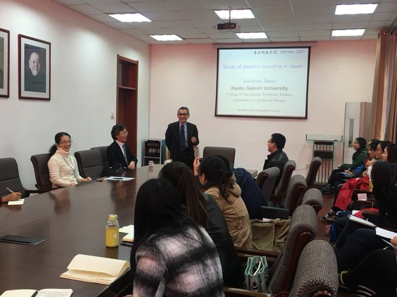 佐野庆一郎教授报告的主题是“日本的废物再循环利用问题”。佐野教授介绍了日本的生活废弃物、医用废弃物、航空港废弃物中的塑料制品回收和再循环利用的具体措施,同时在场师生与佐野教授和施教授探讨了社会转型过程中的环境治理、环境教育与引导等问题,为师生关于学术研究、社会问题研究提供了新视野、新思路。佐野教授的报告深入浅出、详实生动,内容清楚简明、语言幽默风趣,很好地拓宽了四人麻将玩法师生的研究视野。