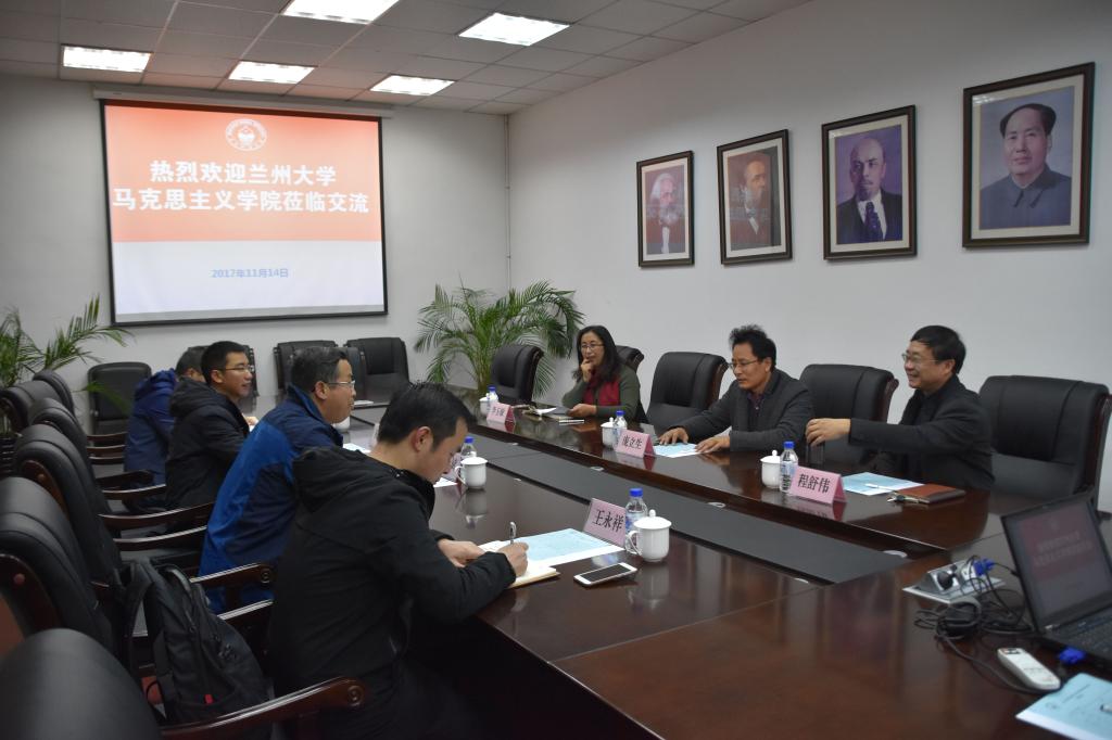 11月14日上午,兰州大学马克思主义学院党委书记赵泽斌一行四人来四人麻将玩法调研交流。四人麻将玩法主要负责人和中国近现代史基本问题研究系负责人参加座谈。