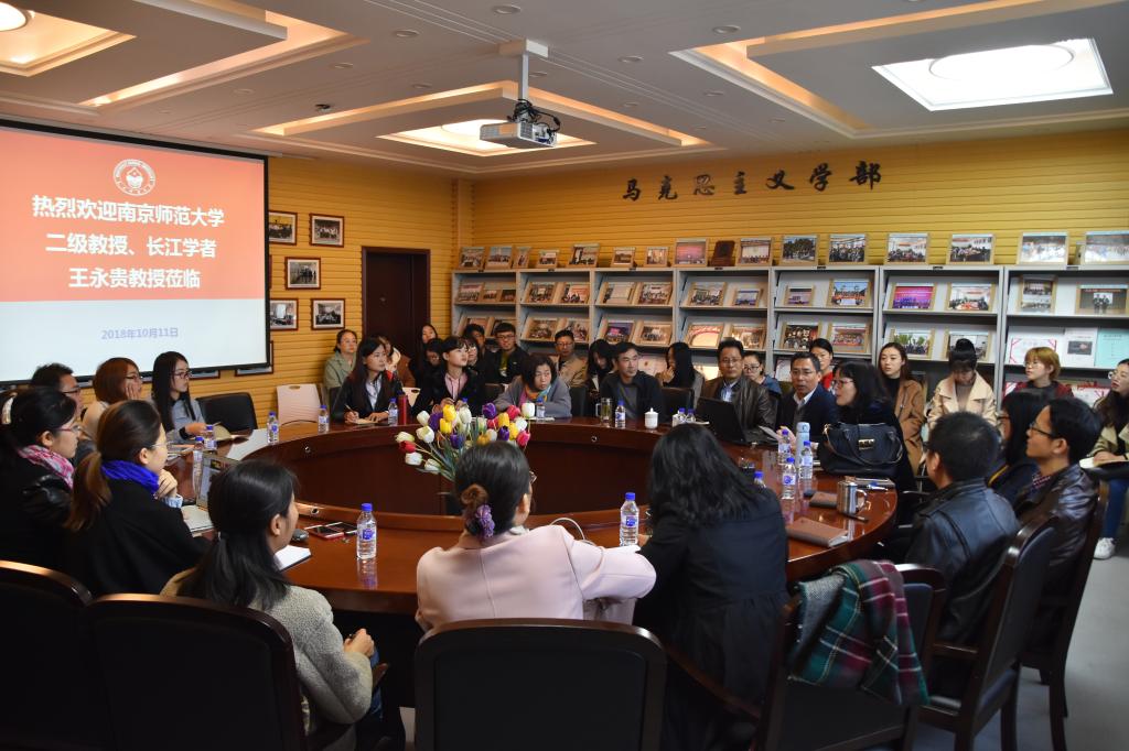 2018年10月11日上午九时,四人麻将玩法邀请到教育部长江学者特聘教授,南京师范大学马克思主义学院二级教授、博士生导师,学校人文社会科学研究院院长王永贵教授,在四人麻将玩法三楼会议室为师生做了题为“新时代意识形态的转型与创新”的精彩讲座。此次讲座由马克思主义基本原理系郭凤志教授主持,四人麻将玩法部长庞立生教授参加了本次讲座。