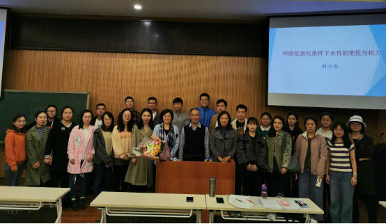 刘教授首先介绍了女性地位与权力的实质、基础与认识的局限;其次详细的阐述了网络信息化时代的社会结构变迁与女性地位提升。以产业结构变迁所引起的女性职业地位的提升、富裕社会的到来所引起的女性经济地位的提升和交往空间的扩展引起的女性社会地位的提升,再次,讲述了网络信息化时代的权力结构变迁与女性权利的提升。分别从农业、工业社会的物质权力、网络信息化时代的信息权利与网络信息权利对物质权利的支配三个角度展开讲述;最后,刘教授展望了网络信息化时代女性研究的新基础与新视野。刘教授的演讲深入浅出娓娓道来,兼之风趣幽默的语言,谦逊儒雅的气质深深吸引了在座的每一位师生。伴随热烈的掌声,讲座圆满结束。
