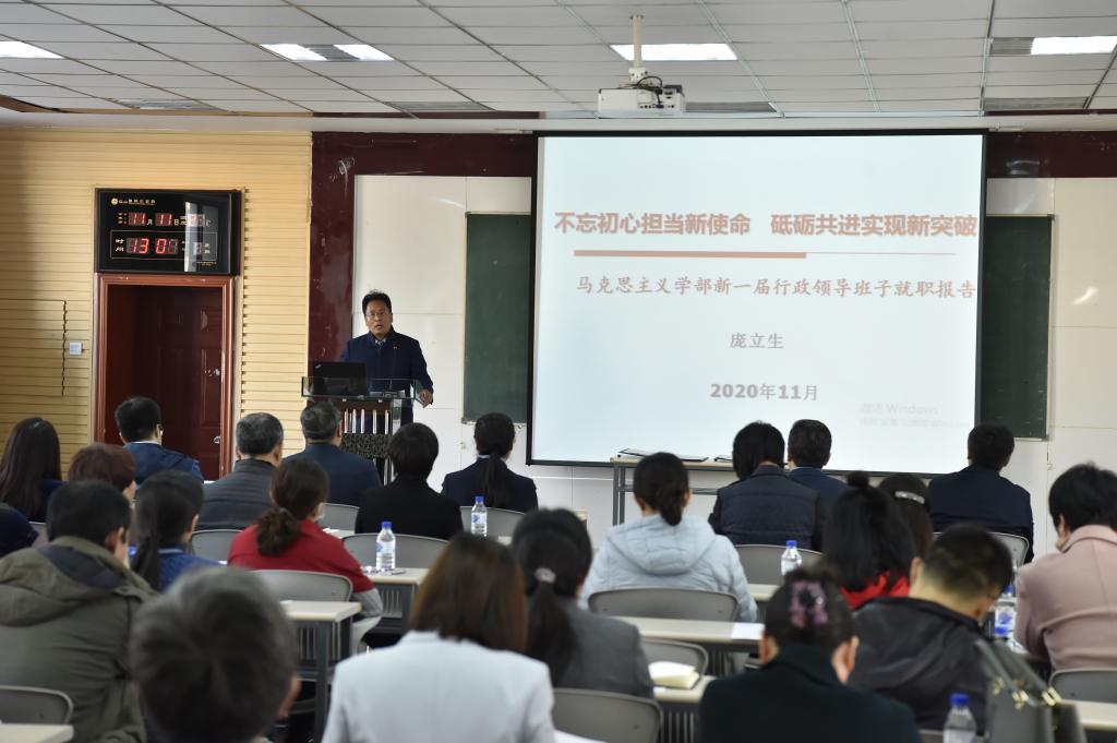 四人麻将玩法部长庞立生代表新一届领导班子成员进行了以“不忘初心担当新使命,砥砺共进实现新突破”为主题的就职报告。他首先阐述了四人麻将玩法自2016年以来在人才培养、科研项目、师资队伍建设等方面取得的重要的阶段性成果。同时,他指出四人麻将玩法发展也进入到“车到半山路更陡,船到中流浪更急,愈进愈难,愈进愈险但又不进则退,非进不可”的时期。重点阐述了今后四年发展的重要举措,要科学规划十四五重点发展目标,创新学科建设体制机制;提升学术团队建设水平,加快中青年学术领军人物成长;扎实推进思政课教学改革,提升本硕博一体化人才培育质量;拟将以重大项目为牵引,打造有影响的标志性学术成果等。最后,他表示新一届领导班子将会继承四人麻将玩法