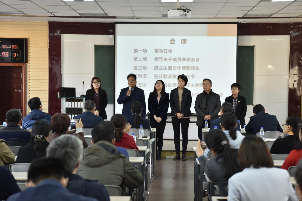 在229报告厅召开了新任领导班子就职会议。校党委副书记兼副校长马晓燕,校党委副书记、纪委书记兰恒斌,学校机关职能部门负责人,四人麻将玩法新一届领导班子成员以及四人麻将玩法教师和学生代表参加了本次会议。