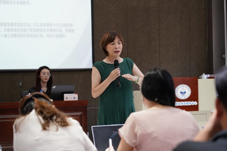 副部长李爽在结业仪式上致辞。她回顾本次培训的全程强调,作为思政课教师,要在思政课教学中紧紧抓住理论着力点,立足新时代以科学理论指导思政课教学;要加深对思政课教学体系化的理解,通过对教学经验的总结、教学技巧的运用和教学模式的创新不断提升思政课的实效性;要践行“尊重的教育”“创造的教育”理念,尊重教育、教师、学生,激发教育主客体的创造性,提升育人育才的效果。最后,她表达了对大家的美好祝愿。