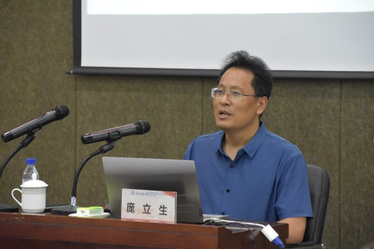 庞立生教授作了题为 “从习近平总书记关于教育的重要论述看新时代高校思政课教学改革”的专题报告。他从“思想政治理论课是落实立德树人根本任务的关键课程”出发,强调思政课教学不能“照着讲”“端着讲”“绕着讲”,要因事而化、因时而进、因势而新,推进思政课教学模式创新,以大思政理念指导建设全员、全程、全方位的大思政育人格局。