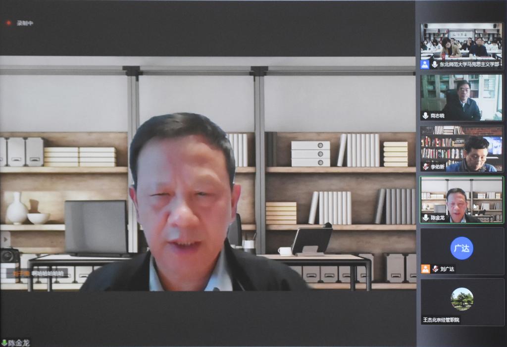 商志晓教授以“百年奋斗的多维呈显和科学把握”为题,以崭新的理论视角阐释了中国共产党的百年奋斗应该如何把握、如何理解与如何呈显等问题。他强调百年奋斗并非过程性、结果性指向,而是凸显了中国共产党的主体性指向。百年奋斗的成就呈显在百年奋斗的历史进程、重大成就、历史意义、历史经验、基本规律和自身建设中。他认为,全面把握党的百年奋斗的历史,要在发展整体性与发展阶段性的有机统一中加深理解,在历史必然性与主体选择性的内在结合中深化思考,在客观规律性与主观创造性的相互协调中全面把握。他指出,“十个坚持”各自独立、各自重点突出,但又具有内在联系,形成一个互为作用、互为支撑的严谨体系,这与十九大报告中“十四个坚持”和“七一”重要讲话的基本的立场观点一致、基本精神内涵相通、基本价值追求吻合,既是我们党在百年奋斗中的伟大创造,又在发展中形成为具有客观性必然性的基本规律,这些本质性的要素和规律性的内容成为我们党不断发展壮大的深厚基础,成为我们党历经百年而不衰、历经坎坷愈坚韧的根本性支撑。