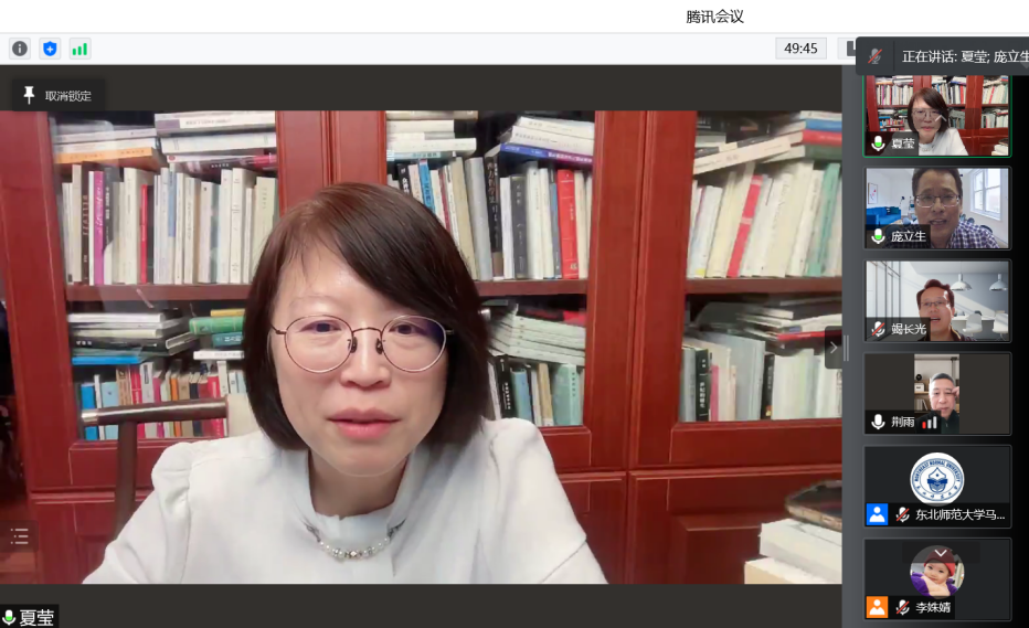 讲座结束后,夏莹教授针对同学们提出的相关问题进行了互动。庞立生教授总结指出,夏莹教授的讲座借用丰富的思想史资源,十分清晰地梳理了西方传统观念论发展的历史逻辑,深刻阐明了马克思哲学与西方观念论传统之间的关系,揭示了马克思哲学作为实践哲学的根本性质,这对我们深入理解西方哲学传统和马克思的哲学革命具有重要的启发意义。夏莹教授的讲座不仅为我们带来了前沿性的学术思想,也同时在抗疫期间给予了我们以精神上的力量。