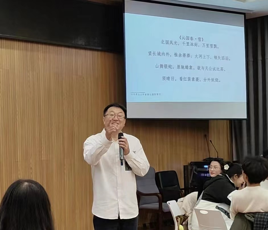 蔡元老师表演的毛主席诗词朗诵《沁园春·雪》,更是将活动推向了高潮,“北国风光,千里冰封,万里雪飘”,冰封雪飘之间,师生们的爱智热情高昂,窗外寒风潇潇,室内其乐融融。蔡老师以独诵滥觞,同学们以鷇音相和,至“数风流人物,还看今朝”之句,全场齐声,蔚为壮观。哲学院薪火相继,师生一体,顾去瞻来,共祝今朝。