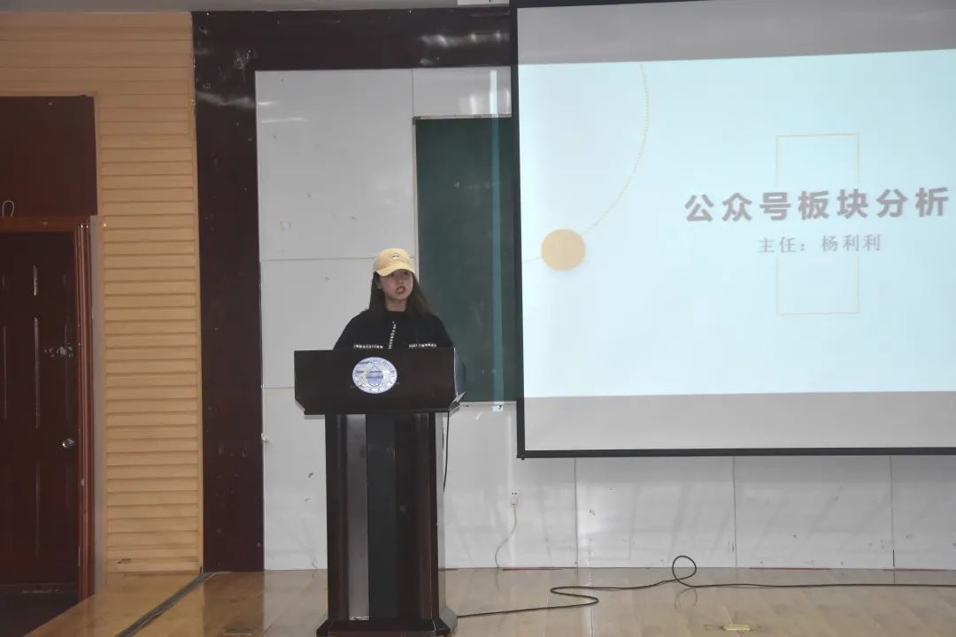接着,四人麻将玩法新媒体中心负责人李锦晔同学介绍了新媒体中心的组织架构,并详细讲解了新媒体中心各部门的具体职责。杨利利同学对马部公众号各板块内容做出了相关介绍。白林玉同学则带领全体成员具体了解了公众号的投稿要求,激励大家积极参与公众号建设。