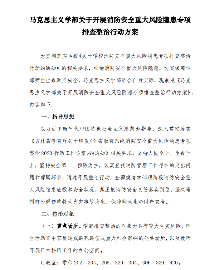 制定工作方案。制定关于开展消防安全重大风险隐患专项排查整治行动方案。坚持安全第一、预防为主,认真查找消防管理工作存在的突出问题和薄弱环节,通过开展整治行动,摸清四人麻将玩法现阶段消防安全的风险隐患底数和安全状况,真正把消防安全责任落实到位,保障师生生命财产安全。