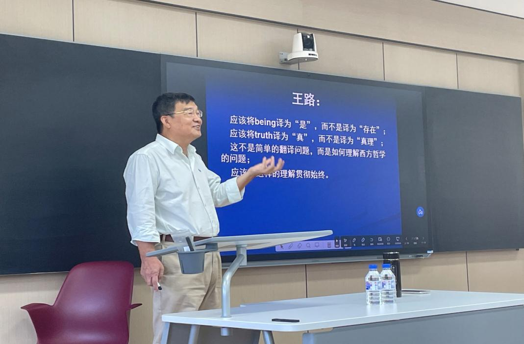 王路教授从罗素的名言:“逻辑是哲学的本质”讲起,认为所有重大的哲学问题都要借助逻辑的方法来处理。接下来,王教授分别从“传统逻辑及传统哲学的形态”与“现代逻辑及现代哲学的形态”两个维度来论证这个观点。王教授认为,在传统逻辑中,研究的基本命题结构是“S是P”,而传统哲学研究的核心问题是对“是”本身的研究。“是什么”是人最基本的提问和回答问题的方式,因此,传统哲学无论是本体论还是认识论阶段,都是围绕着对“是”的问题展开的。现代逻辑的产生改变了人们看待句子的方式,王教授重点讲解了现代逻辑中经典的“一阶谓词逻辑”理论。正是逻辑观念的变化使得现代哲学探讨的核心问题从“是”转变为“真”。对“真”的探讨,除了需要借助一定的经验手段,同时还要从逻辑的角度研究句子的真值条件。因此,逻辑的观念和方法对于哲学研究至关重要。在王教授看来,哲学与其他科学存在根本的区别。任何一门科学都是关于一类事物的认识,而哲学是关于认识本身的认识,哲学就是形而上学。王路教授从逻辑的视角看待哲学问题,为学生拓宽了理论思路,打开了理论视野。学生们纷纷就讲座中的问题向王路教授请教,王教授耐心地回答了学生们的相关问题。