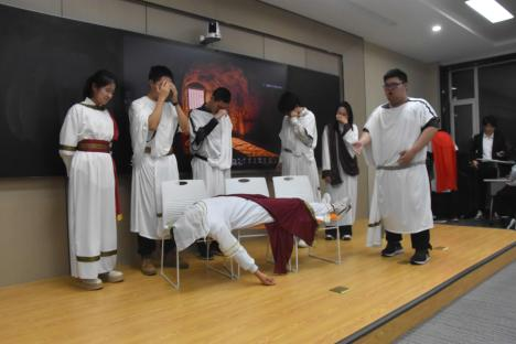 其中,2021级和2022级本科生编演的戏剧《苏格拉底之死》和《莎乐美》,将晚会气氛推向高潮。