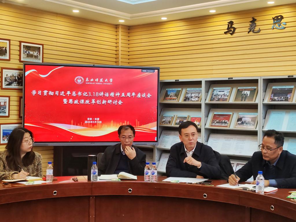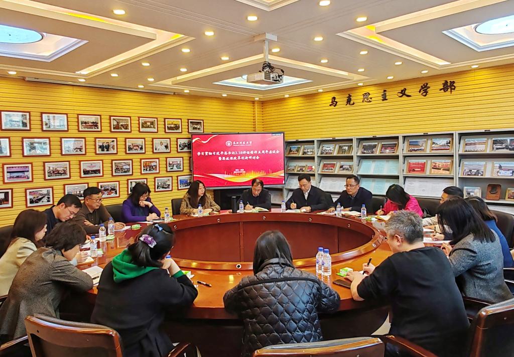 举办学习贯彻习近平总书记3.18讲话精神五周年座谈会暨思政课改革创新研讨会。我校党委副书记兼副校长常青、四人麻将玩法党政班子成员、院系主任及支部书记以及思政课教师代表参加座谈,会议由四人麻将玩法