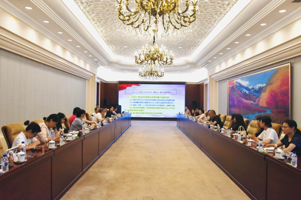 会上,顾海良教授围绕“坚持思政课建设与党的创新理论武装同步推进”“加快构建以习近平新时代中国特色社会主义思想为核心内容的课程体系”“党的二十届三中全会对课程教学新要求”等方面作了专题辅导。他系统梳理了高校思政课程体系的变化历程以及新时代高校思政课的建设与发展,就党的二十届三中全会精神融入思政课特别是《习近平新时代中国特色社会主义思想概论》课提出了指导性建议。研讨期间,顾海良教授同与会教师就如何进行有针对性教学、如何提高教师理论与实践相结合的能力以及如何实现队伍内涵式发展等问题进行了深入交流。