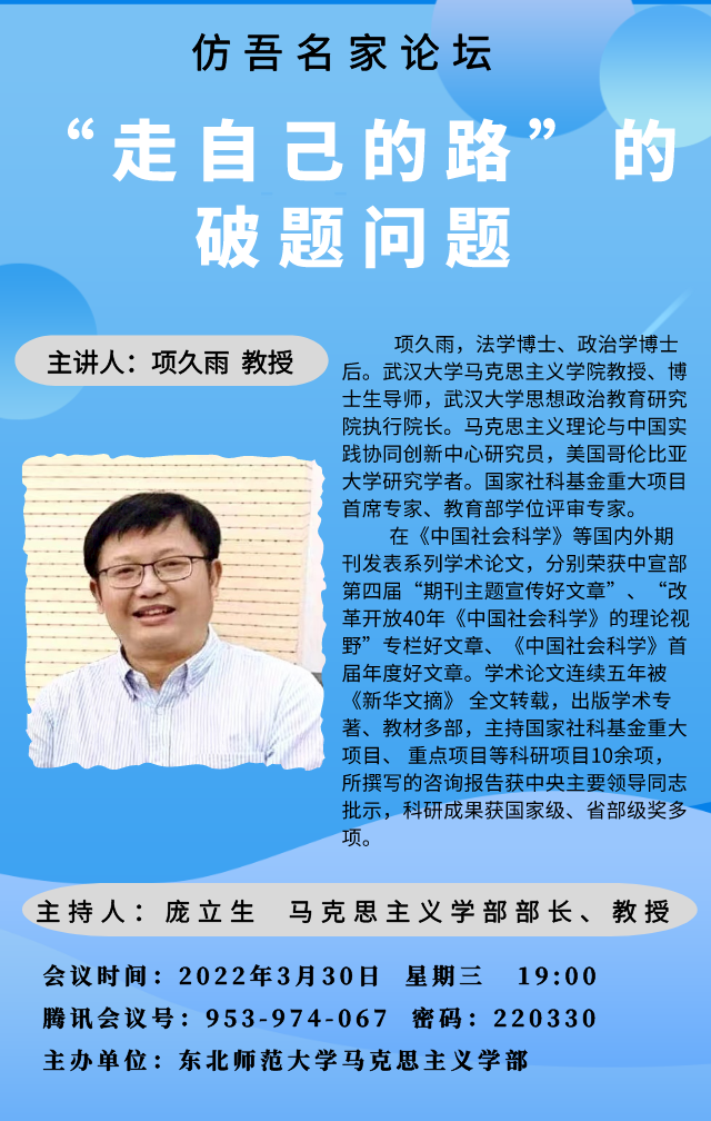 主讲人:项久雨 武汉大学马克思主义学院教授、博士生导师