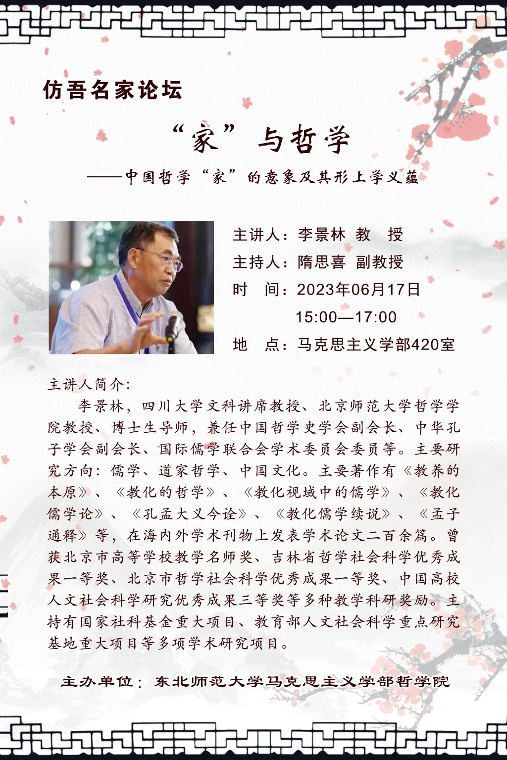 讲座预告:“家”与哲学-中国哲学“家”的意象及其形上学义蕴