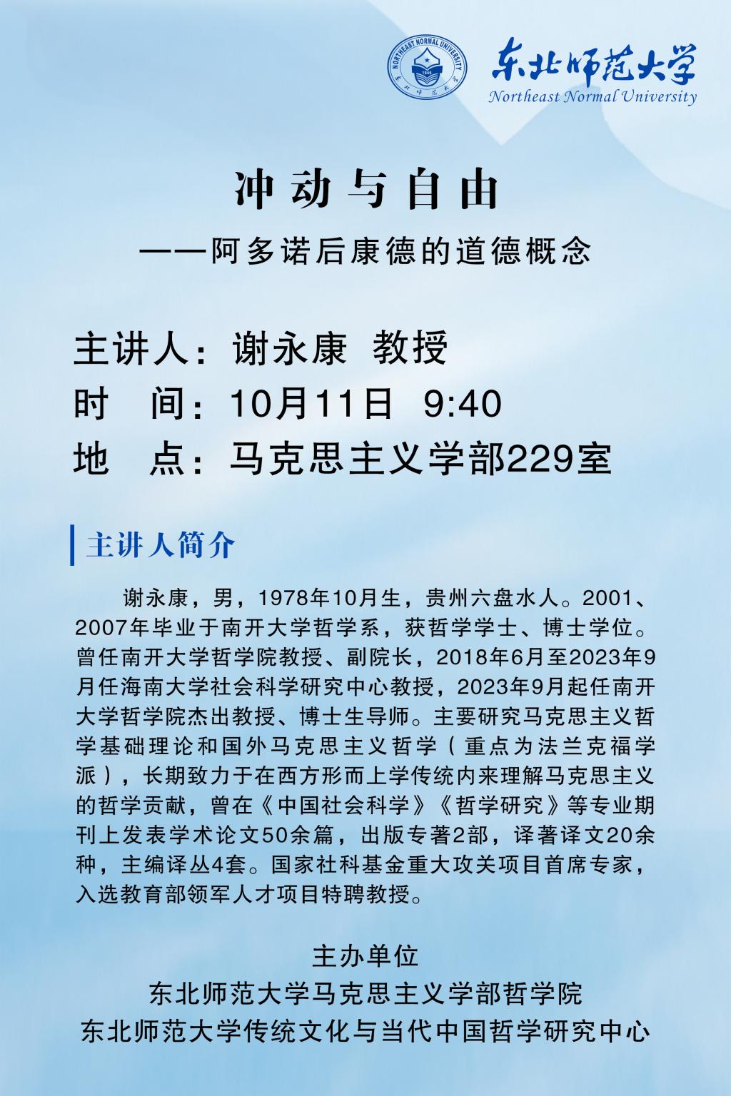 讲座预告:冲动与自由-阿多诺后康德的道德概念