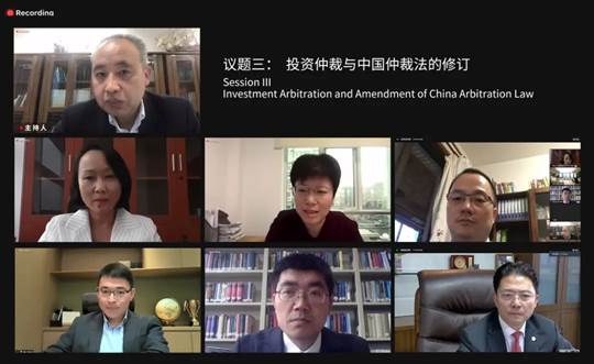 Session III, "Investment Arbitration and  Amendment of China Arbitration Law", was chaired by Prof. Xiao Yongping, Director of the Wuhan University Institute of International Law and Advisor to the Permanent Forum. Dr. Wang Xuehua, Chief Partner of Beijing Huanzhong Law Firm and Vice-Chairman of the Permanent Forum; Dr. Wang Wenying, Secretary General of the Hong Kong Centre for Trade Arbitration; Dr. Jiang Lili, Vice President and Secretary General of the Arbitration Institute of China University of Political Science and Law; Dr. Lin Zhong, Partner of Yingming Law Firm and Vice-Chairman of the Permanent Forum; Mr. Qin Dezhi, Head of Regional Legal Affairs Department of Huawei Technologies; Mr. Zhang Sheng, Associate Professor of the Law School of Xi'an Jiaotong University and Executive Secretary of the Permanent Forum, participated in the discussion.
