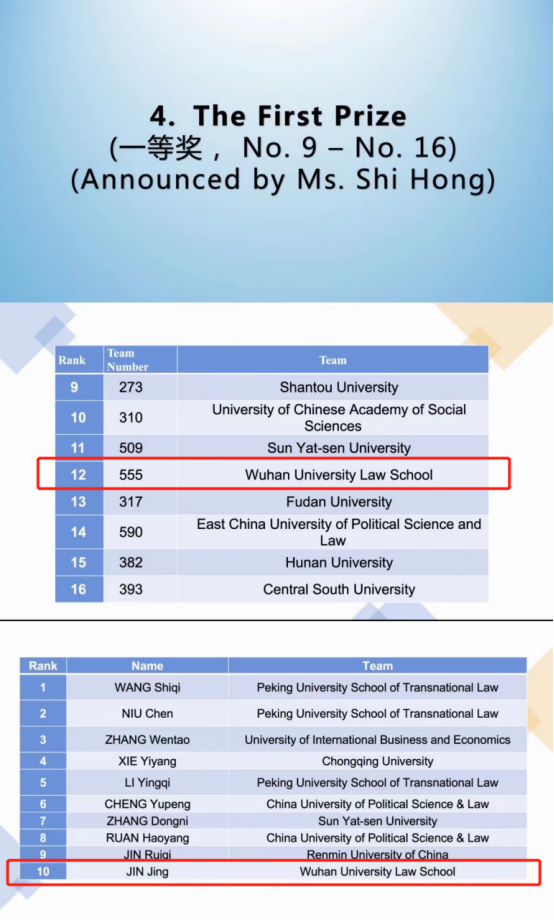 Wuhan University delegation wins first prize and Best Oralist in the 21st Jessup International Law Moot Court National Selection Competition-武汉大学法学� <#webadvjs#>