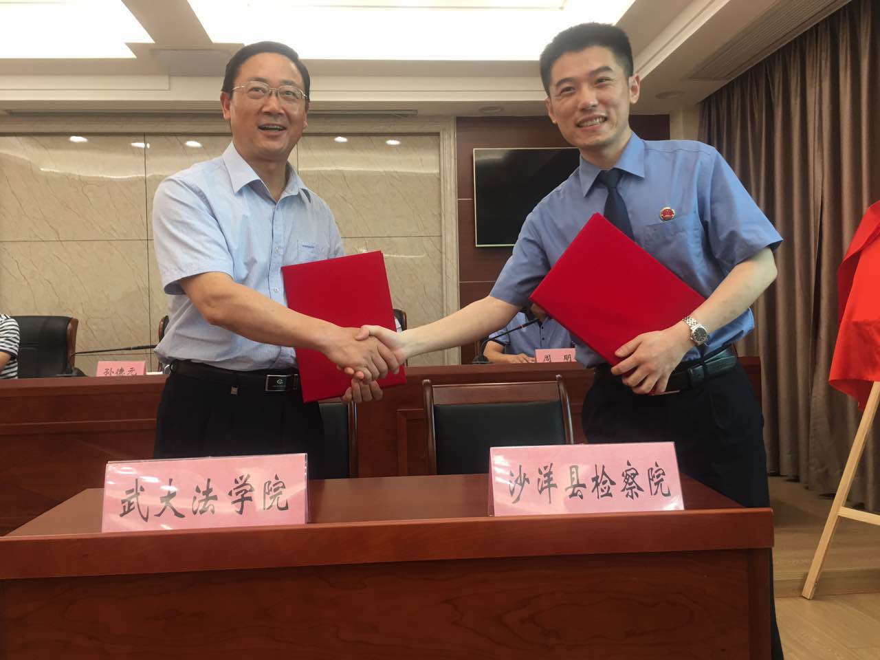 与沙洋县人民检察院共建法学教学实习基地揭牌仪式在沙洋县人民检察院顺利举行。荆门市人民检察院党组副书记、副检察长官书云,沙洋县委副书记、政法委书记陈威,沙洋县委常委、组织部部长周明,沙洋县人民检察院党组书记、检察长赵龙及沙洋县人民检察院党组成员、各部门负责人参加了本次授牌仪式。四人麻将玩法